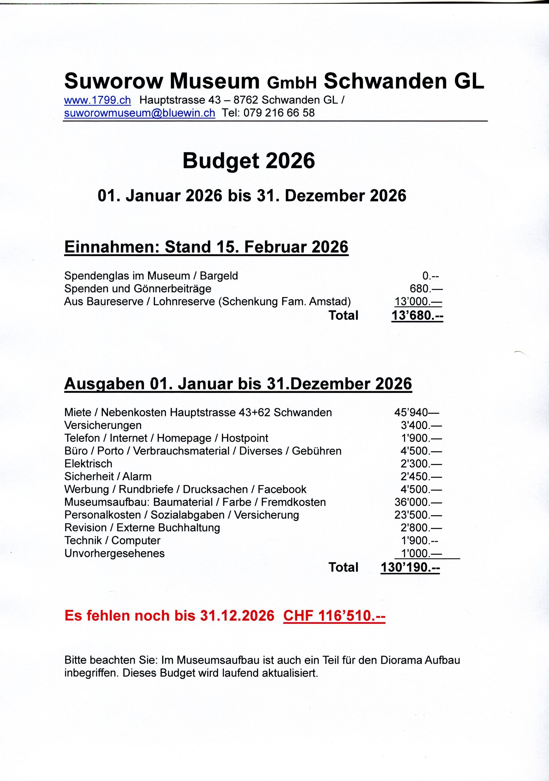 Bei allen Spendern (auch ohne Kontaktangaben), möchte ich mich hier an dieser Stelle, ganz herzlich bedanken. Ihre grosse Unterstützung motiviert sehr, am Museum weiter zuarbeiten. Wir geben nicht auf!